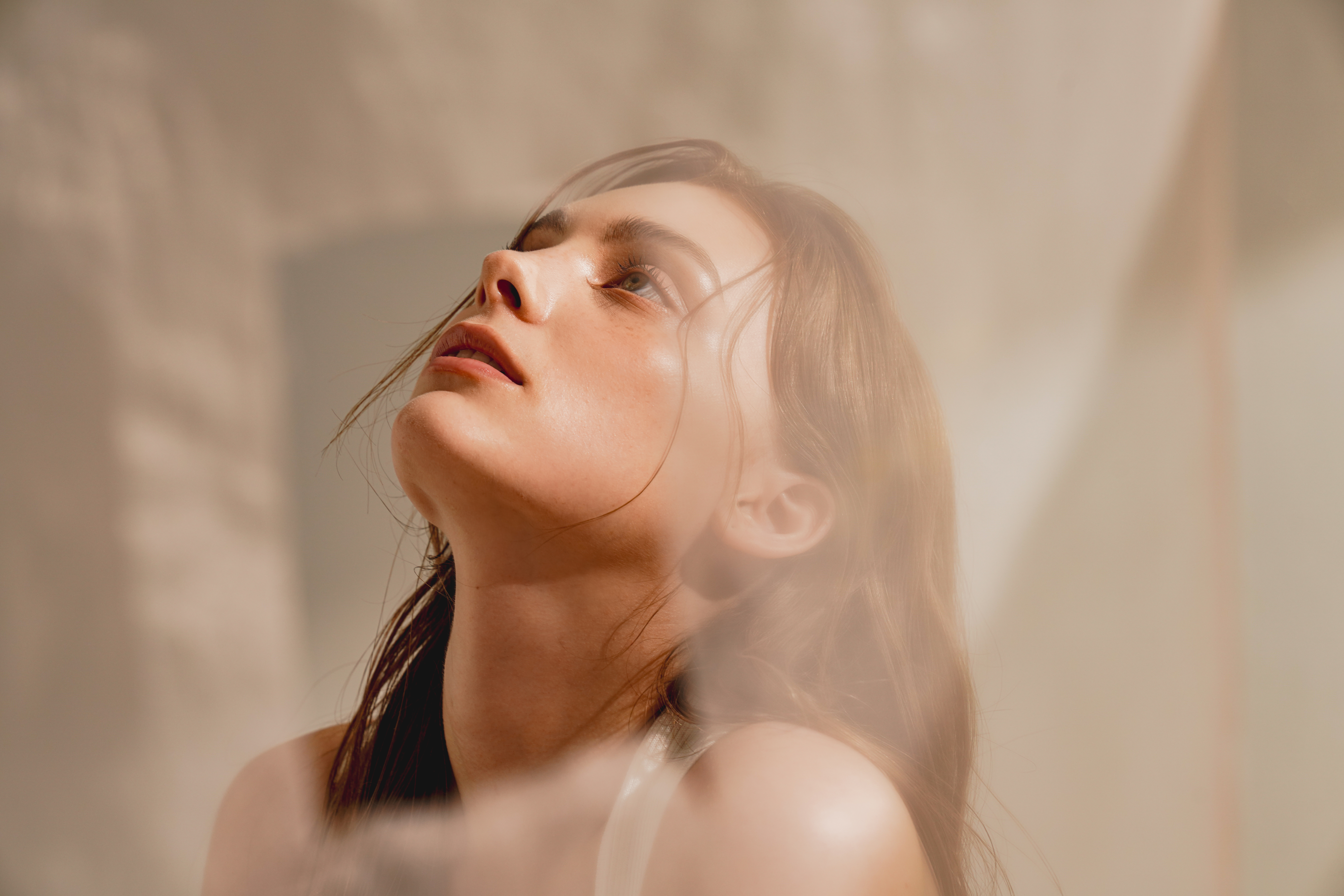 Natural beauty portrait of a young western woman shot in warm tones