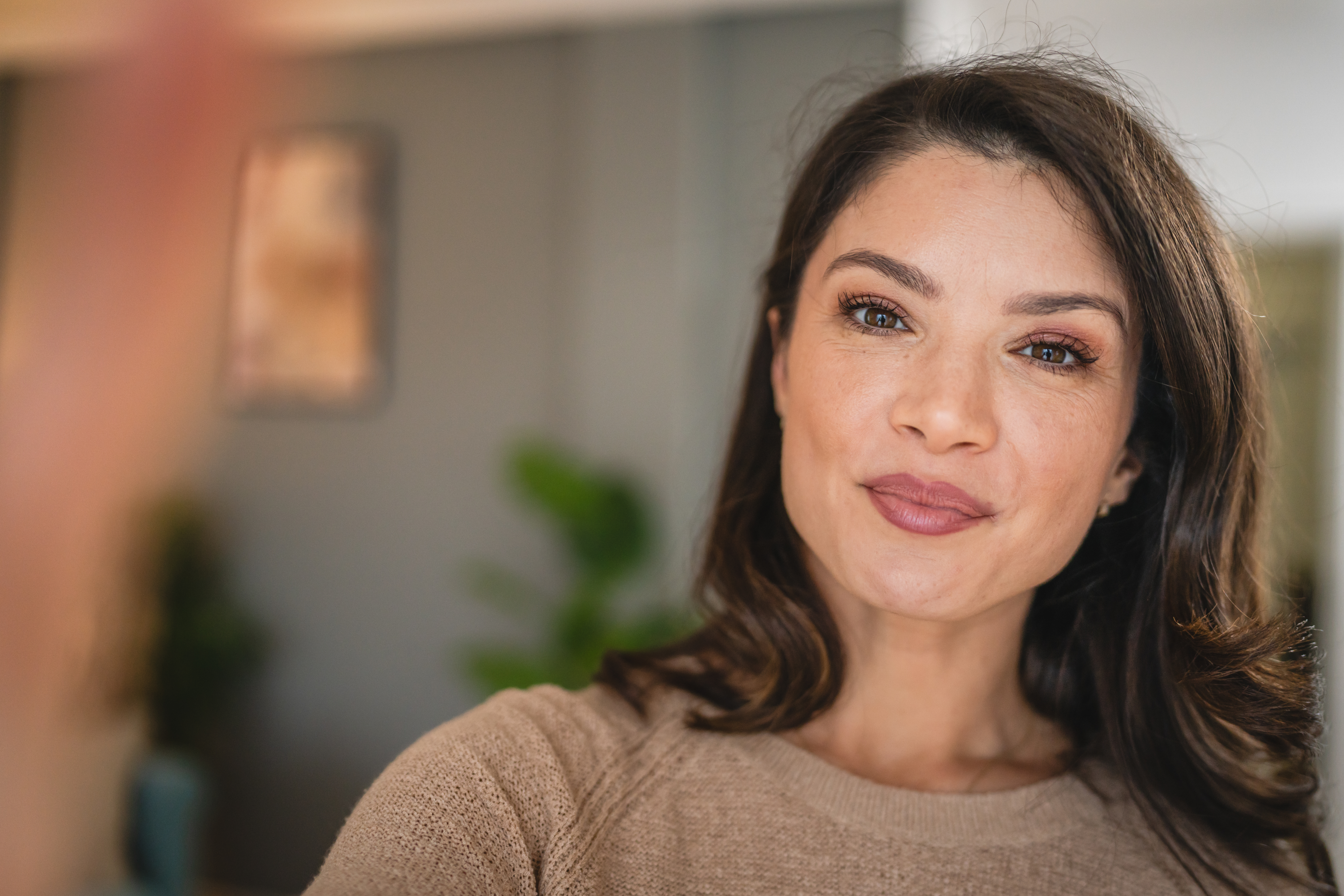 Mature caucasian woman female at home happy smile portrait close up